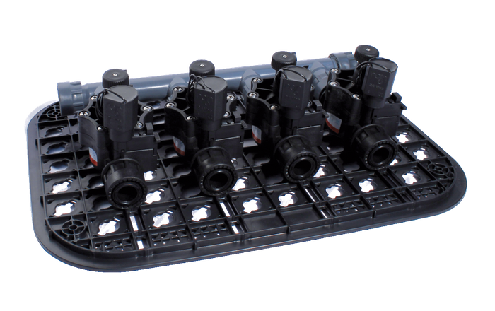 The pre-assembled Professional Wetta 4 Valve Box Kit 9V DC, equipped with 4 Rain 9V Solenoid Valves, simplifies valve box installation, reduces maintenance time, and keeps the valve box organized and clean. This kit includes four Rain 9V Solenoid Valves, a 4-outlet manifold, cap, and a positioning grid for easy setup. This setup is ideal for systems with flow rates from 10 to 25 l/min - a great choice to streamline your next irrigation install.